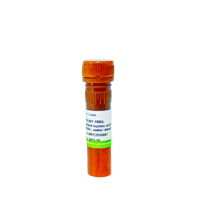 GelRed is a highly sensitive, non-mutagenic, ultra-safe and ultra-stable fluorescent nucleic acid gel staining reagent (working concentration), which can replace ethidium bromide (EtBr, EB) with much higher sensitivity than EB without decolorization. GelRed has the same spectral characteristics as EB, and replaces EB without changing the imaging system.
